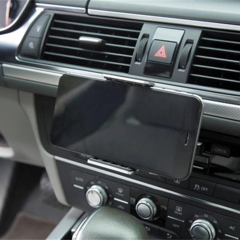 Assurant une flexibilité au niveau de sa largeur réglable, ce support de fixation pour lecteur CD vous permettra d'accrocher votre appareil portable solidement et fermement. De plus, le fait qu'il soit complètement pivotant vous offrira la possibilité d'orienter votre téléphone soit en mode paysage, soit en mode portrait et suivre votre navigation GPS en tout confort.